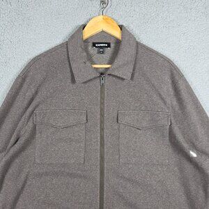 Express Full Zip Ovetshirt Mens Size XL Taupe Twill Knit Cotton Blend Regular