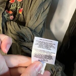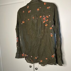 Express green 100% cotton gauze button up with floral embroidery. Cottagecore indie bohemian vibes. Size small.