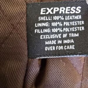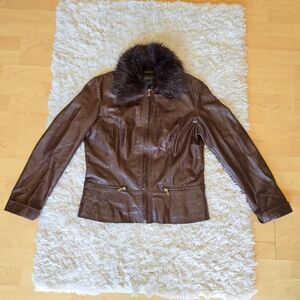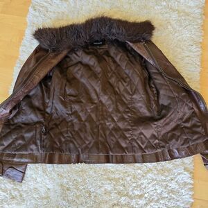 Express Genuine Leather Croc Embossed Brown Jacket Zip W/Faux Fur Collar Size 14