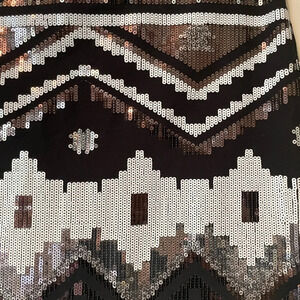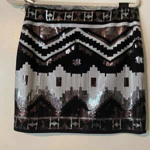 Express Geometric Patterned Sequin Mini Skirt Black and Silver Size Medium