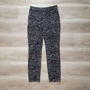 Express Geometric Printed Straight Leg Ankle Trouser Pants Black & White Size 2R