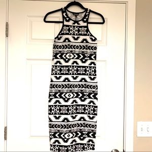 Express geometric black & white racerback midi bodycon dress