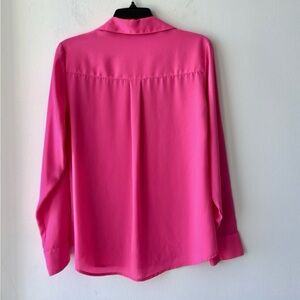 This Express Portofino Barbie pink shirt features a full button front, point collar, long sleeves with button cuffs, and double chest pockets. Cut in a relaxed style, it features an easy fit with a timeless silhouette. Very light and airy
