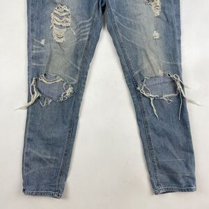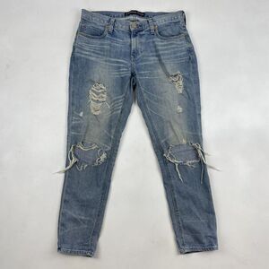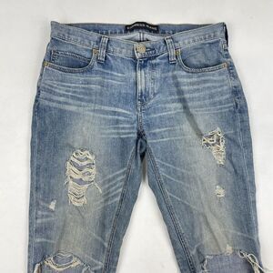 Express Girlfriend Denim BlueJeans Medium Wash Stretch Distressed Sz 2 Stretch