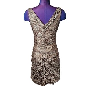 In excellent condition Express Gold Floral Lace Bodycon Mini Cocktail Dress Size 6 Women's A81.