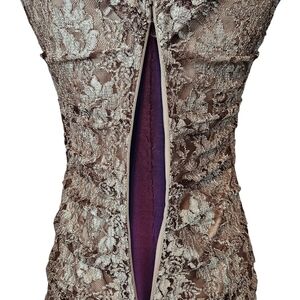 Express Gold Floral Lace Bodycon Mini Cocktail Dress Size 6 Women's A81