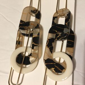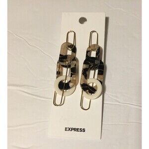 The Express Gold Link Chain Patterned Resin Earrings are stylish and trendy accessories perfect for adding a touch of glamour to any outfit. Made from durable resin and featuring a gold chain pattern, these dangle/drop style earrings are sure to make a statement. The Express brand ensures quality and sophistication, making these earrings a must-have for any fashion-forward individual looking to elevate their jewelry collection.