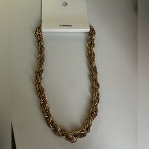 This exquisite gold rope chain necklace from Express features a classic twisted design with a warm, antiqued finish. The substantial thickness and interwoven pattern create a textured, elegant look, making it a standout piece in any jewelry collection.