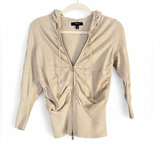 Express Gold Ruched Zip Up Top