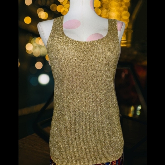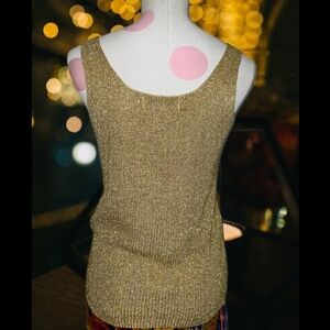 Shimmering gold tank top. Sleeveless design. Perfect for layering or wearing alone.