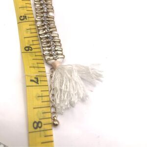Name brand fashion costume jewelry This exquisite bracelet from Express showcases a harmonious blend of white and gold tones, crafted with a delicate woven design. Its intricate pattern and elegant finish make it a versatile accessory for any occasion. New, see pictures for measurements.
