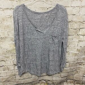 Express Womens Large Gray Burnout V Neck Tab Sleeve Pocket T Shirt in good used condition. No stains, tears or rips.