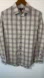 Classic Express 1MX button-up shirt in gray plaid. Long sleeves, slim fit, great for work or everyday wear.