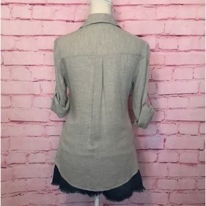 Express light heather gray Portofino top. Full length sleeves with tabs to adjust sleeve length. Size extra small. Two pockets in the front. Button down. Rounded hem on bottom. 100% rayon. Light and comfortable. Perfect for work or casual with jeans. Such a great staple piece for wardrobes! Excellent condition 🌟