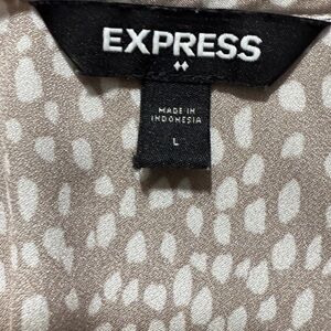 This chic wrap blouse from Express features a sophisticated tie front design in a blend of gray and cream hues. The long sleeves and elegant wrap style make it a versatile addition to any wardrobe, perfect for both casual and formal occasions.