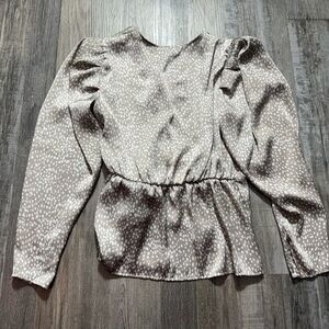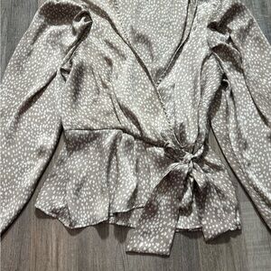 Express Gray Cream Long Sleeve Wrap Blouse