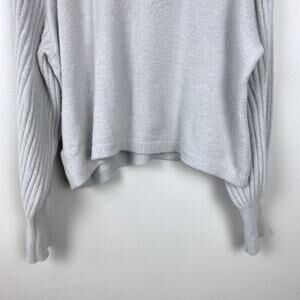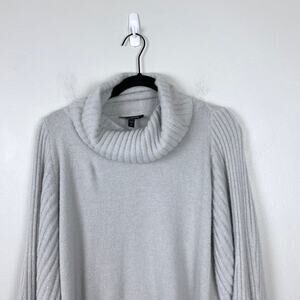 Express Gray Fuzzy Turtleneck Sweater Balloon Sleeve Pullover Cowl Size Large