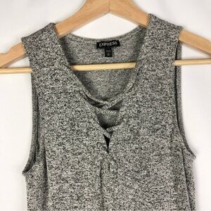 Express Gray Knit Criss Cross Neck Flared Hem Tank Top XS