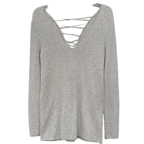 Express Gray Lace Up Back Sweater Women’s Small Long Sleeve