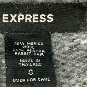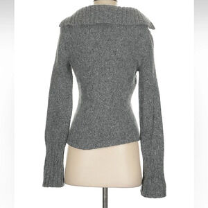 Express Gray Merino Angora Wool Angora V-Neck Sailor Collar Sweater Size Small S