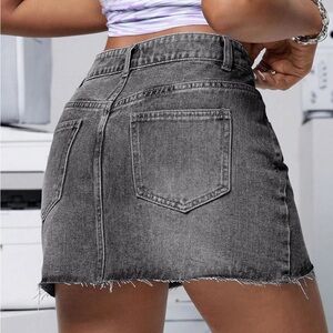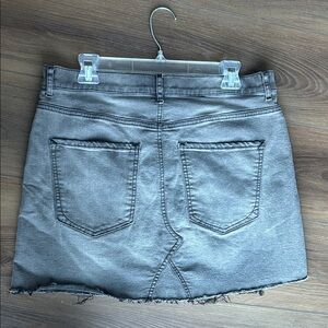 Trendy gray mini skirt by Express. Features a frayed hem and classic denim style. Ideal for casual wear. Worn twice.