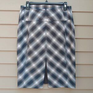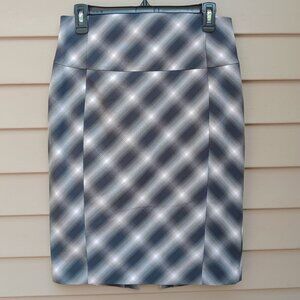 Express Gray Mixed Plaid Skirt Pencil Straight High Waist Workwear Office