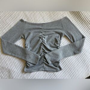 Express Gray Ruched Knit Top
