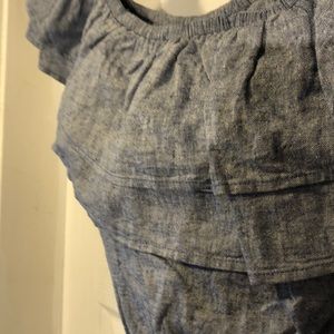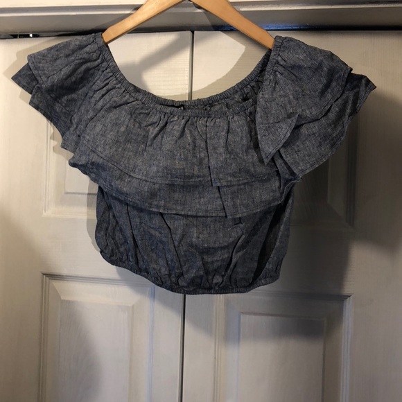 Express Gray Ruffle Off-Shoulder Top