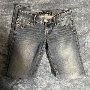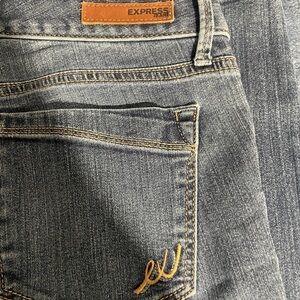 These Express skinny jeans in a sleek gray hue offer a contemporary twist with their subtle distressed details. Crafted for a flattering fit, they blend comfort with style, making them a versatile addition to any wardrobe.