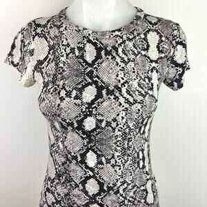 Express Black Gray Snake skin Animal Print Crew Neck Short Sleeve Basic T Shirt Tee Top Pullover Unlined Animal Print Rayon Blend