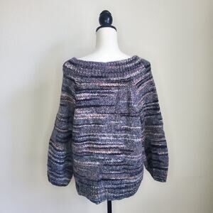 This sweater channels a winter boho vibe with its cozy knit and soft color palette. The boatneck neckline and ribbed trim add a relaxed, effortless touch, while the multicolor stripes bring warmth and personality to your cold-weather wardrobe. Perfect for layering with denim or pairing with a flowy skirt for a laid-back, feminine look.