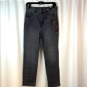 Express Gray Super High Rise Slim Leg Jeans with Beaded Detail- NWT- 6