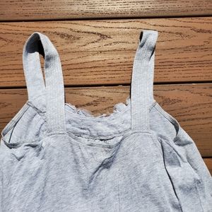 Express Gray Tank Top Wide Straps Mesh Ruffle Preppy Flowy Loose Boho Cotton XS
