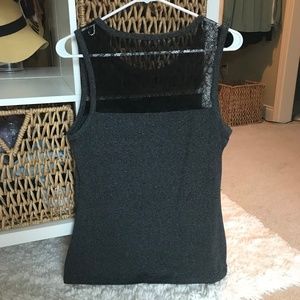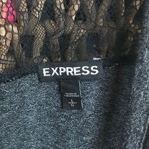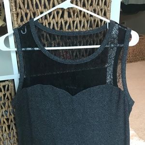Express tank top in gray. Gray material is very soft and comfortable with stretch. Sweetheart neckline and black lace on the top. Only worn once. Great condition. Size large.