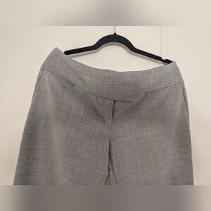 These Express gray trousers offer a timeless professional look with their classic fit and structured fabric. Designed for business settings, they feature a full-length straight-leg cut and a traditional waistband with belt loops. Ideal for formal occasions, these trousers provide a polished and sophisticated appearance.