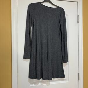 Express Gray V Neck Long Sleeve Swing Dress Size Small