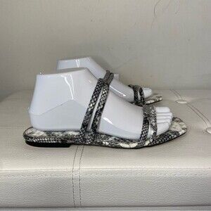 Express Gray Black White Reptile Snake Print Square Toe Double Strap Sandals Size 7