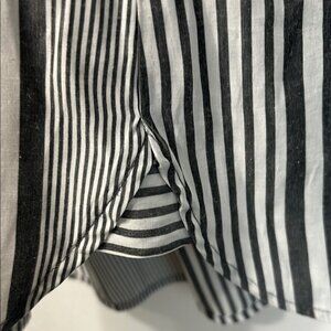 This sleeveless high-low button down shirt from Express features a collar and a relaxed fit, looks great on its own or layered with a blazer or sweater. The varied striped pattern adds a classic touch to the top. Size Small.