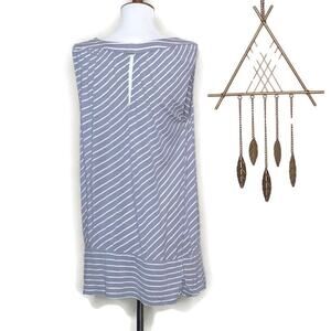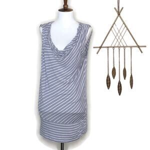 Express gray and white striped sleeveless blouse size medium. Cowl scoop neck with a keyhole in the back. Bottom is more fitted, the rest is looser. Preowned condition, no holes or stains. Please see pictures.