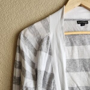 Express Gray and White Striped Knit Cardigan Size M