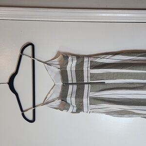 Elegant midi dress with bold stripes. Features a stylish cut-out and wrap design. Perfect for versatile wear.