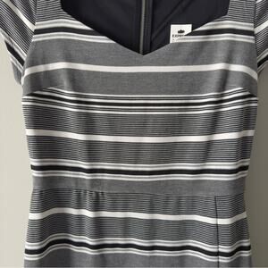 Express Gray and White striped Sheath Midi Dress V-Neck Cap Sleeves zip up slit