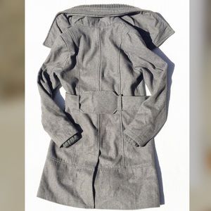 I only wore this once to the office for a total of 20 mins lol practically new. Fits beautifully just not cold enough where I live to get use of it I have a Blk and off white one also listed. No trading bundle and save ☺️