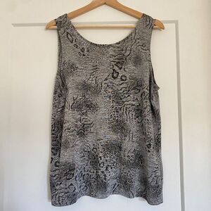 Express Gray Academia Abstract Flowy Business Casual Tank Top Blouse Shirt