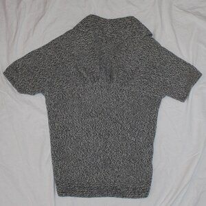 Express Gray/White Variegated Short Sleeve Heavy Open Front Roll Collar Sweater