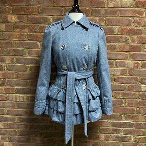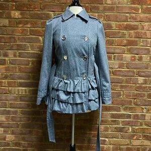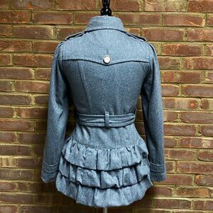 Express Gray Wool Double Breasted Ruffled Belted PeaCoat
