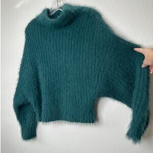 Express Green Fuzzy Long Sleeve Mock Neck Crop Sweater XS
