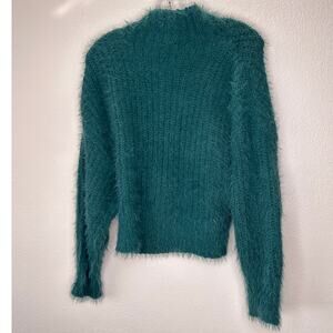 Express Green Fuzzy Long Sleeve Mock Neck Crop Sweater