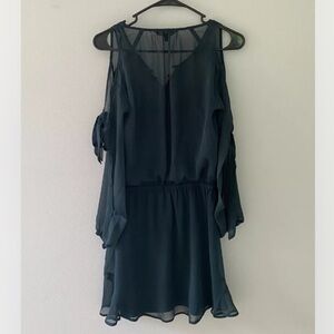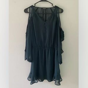 Express XS Dark Green Sheer Lined Long Slit Sleeve Above Knee Fit & Flare Dress