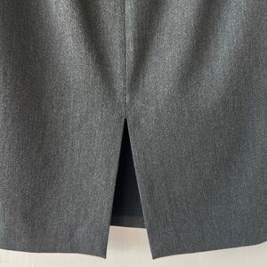 Polished and timeless Express pencil skirt in dark grey. Features a flattering slim fit, side zip closure, and subtle back bow detail at the waist for a feminine touch. Perfect for office wear, business meetings, or styled with a blouse for an elegant evening look.